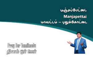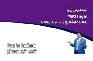 மாவட்ட Collector Bro. M. Thangavel அவர்களுக்காகவும், Superintendent of Police Bro. Prabhakar அவர்களுக்காகவும், District Revenue Officer Bro. M. Kannan அவர்களுக்காகவும், Project Director Sis. Sreelekha Thamilchelvan அவர்களுக்காகவும் ஜெபிப்போம்.