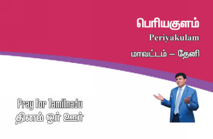 பெரியகுளம் நகராட்சிக்காக ஜெபிப்போம். பெரியகுளத்தில் உள்ள மக்களின் இரட்சிப்பிற்காக ஜெபிப்போம். கர்த்தர் பெரியகுளம் பகுதியில் பெரிய எழுப்புதலை கொண்டுவரும்படி ஜெபிப்போம். பெரியகுளம் நகரத்தில் சுவிசேஷம் அறிவிக்கப்படாத பகுதிகளில் கர்த்தருடைய வார்த்தை விதைக்கப்பட ஜெபிப்போம். பெரியகுளம் நகரத்தில் கர்த்தரால் அநேக ஆத்துமாக்கள் இரட்சிக்கப்படவும், அநேக தேவ ஊழியர்களையும் கர்த்தர் எழுப்பி தரும்படி ஜெபிப்போம்