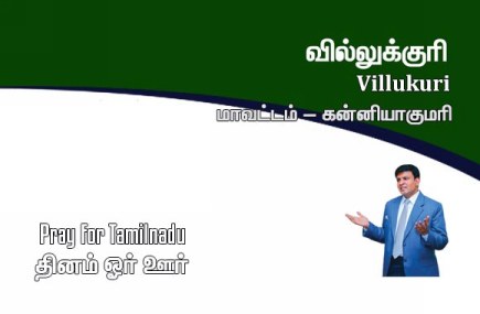 வில்லுக்குரி பேரூராட்சிக்காக ஜெபிப்போம். இந்த பேரூராட்சியில் உள்ள மக்கள் மத்தியில் கர்த்தர் பெரிய எழுப்புதலை கொண்டுவரும்படி ஜெபிப்போம். அநேக மக்கள் இரட்சிக்கப்பட ஜெபிப்போம். இந்த பேரூராட்சியை சுற்றியுள்ள கிராமங்களில் சுவிசேஷம் அறிவிக்கப்படாத பகுதிகளில் கர்த்தருடைய வார்த்தை விதைக்கப்பட ஜெபிப்போம். புதிதாக சபைகள் கட்டப்படவும், தேவ ஊழியர்களை கர்த்தர் எழுப்பி தரவும் ஜெபிப்போம்.