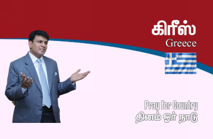 கிரீஸ் நாட்டிற்காக ஜெபிப்போம். கிரீஸ் நாட்டின் ஜனாதிபதி Katerina Sakellaropoulou அவர்களுக்காகவும், பிரதமர் கிரியாகோஸ் மிட்சோடாகிஸ் அவர்களுக்காகவும், பாராளுமன்ற சபாநாயகர் கான்ஸ்டன்டைன் டசோலாஸ் அவர்களுக்காகவும் ஜெபிப்போம். கிரீஸ் நாட்டு மக்களுக்காக அவர்களின் ஆசீர்வாதத்திற்காகவும், இரட்சிப்பிற்காகவும் ஜெபிப்போம். கிரீஸ் நாட்டில் உள்ள இயற்கை வளங்களுக்காகவும், அவைகள் பாதுகாக்கப்பட ஜெபிப்போம். நாட்டின் நிர்வாக பிரிவுகளுக்காகவும், அரசாங்கத்திற்காகவும் ஜெபிப்போம். கிரீஸ் நாட்டின் தொழில் வளர்ச்சிக்காகவும் ஜெபிப்போம். நாட்டின் பொருளாதாரத்திற்காக ஜெபிப்போம். கிரீஸ் நாட்டில் உள்ள கல்வி நிறுவனங்களுக்காக ஜெபிப்போம்.